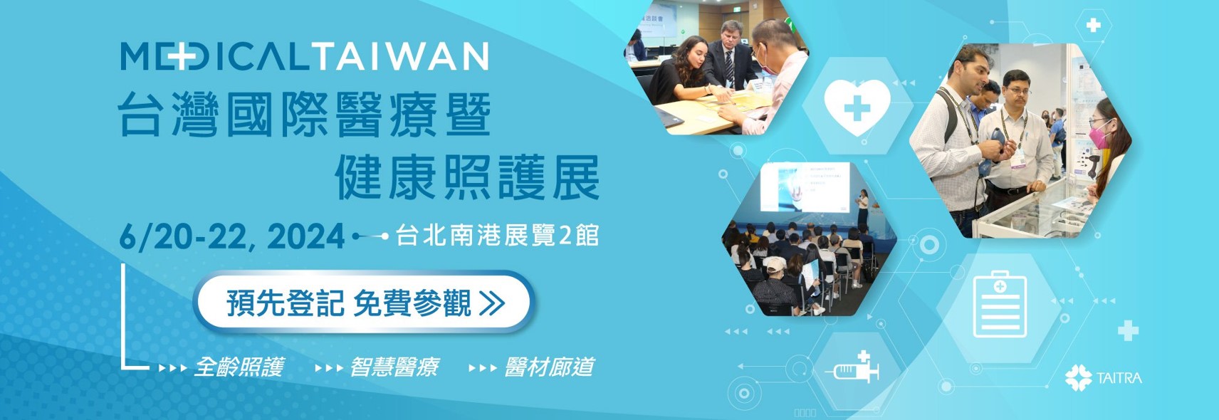 由外貿協會主辦的台灣國際醫療暨健康照護展(Medical Taiwan),即將在台北南港展覽館2館盛大展出。今年以三大主題「全齡照護」、「智慧醫療」、「醫材廊道」,完整呈現全醫療產業供應鏈,除了多元參展商共襄盛舉之外,主辦單位也邀請到許多專家共同舉辦論壇,分享醫材相關議題,擁有多元展區、新創企業、豐富活動的加持,為國內外參觀者帶來更多驚喜!